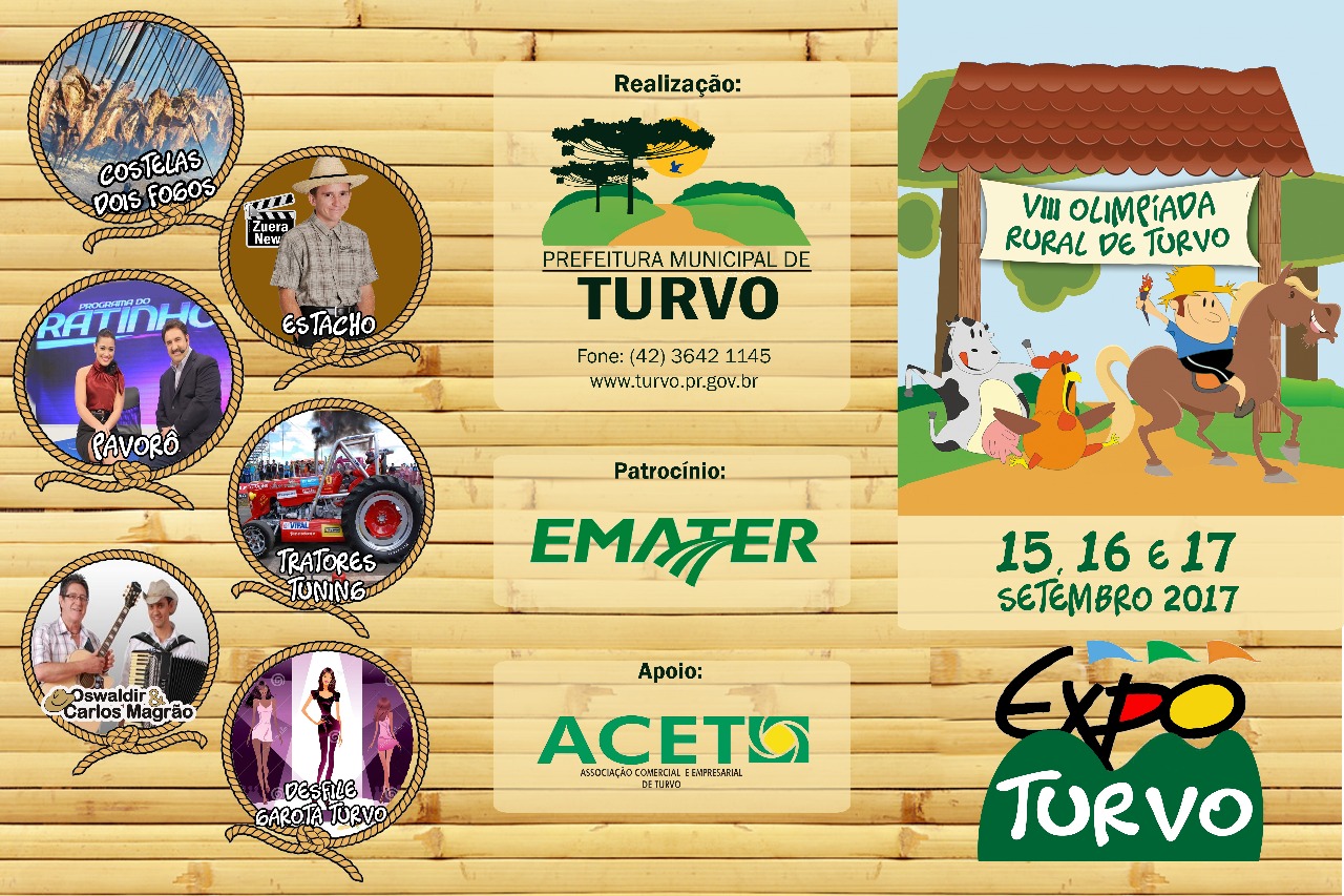 É hoje! Hoje haverá a abertura oficial da VII ExpoTurvo, a abertura acontece ás 19h00 no CTG Rincão do Pinhal. Em seguida acontecerá o Desfile da Garota Turvo e após shows com artistas locais.